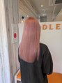 ブリーチ3回の状態に薄いピンク色で染めています。ホワイトピンクカラー。