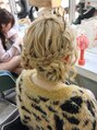 低めのお団子ツイン。お誕生日イベントに合わせ、ふわふわルーズめなシルエット。お客様ご持参のティアラを最後に固定して華やかに