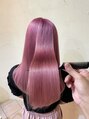 淡くミルキーなピンクを重ね、光が当たるたびに艶があふれるように仕上げました。派手になりすぎず、可愛さと上品さが両立する色味。肌なじみのいいピンクで、印象がやわらかく見える大人女性におすすめ。色落ちはブロンドに落ちてくれます。