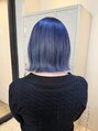 しっかり抜いたベースに、透明感のあるブルーを重ねたカラー。ブリーチを2回行うことで、濁りのないクリアな発色が叶います。