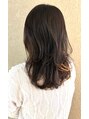 レイヤーを入れたロートーンのオリーブベージュ。扱いやすい長さで結ぶのもOK。万人に愛されるヘアースタイルです。