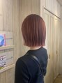 顎下の長さでボブにカット!ストレート仕上げでプツッと切りっぱなしスタイルカラーはもともとのブリーチに色味を入れました!赤すぎない柔らかい赤カラーが派手すぎなくオシャレ感をアップさせます!