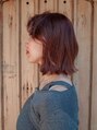 トレンドの顔周りにしっかりレイヤーが入ったボブ。顔周りをしっかり巻くことでレイヤーを活かせてニュアンスがでます!ヘアカラーは明るめのオレンジベージュで柔らかく明るい印象に。あえて濡れ感を出さず柔らかく動くようにバームでセットしました。