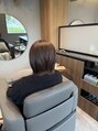 アッシュブラウンにほんのりピンクパッツンボブだけど表面にレイヤー入れる事で軽やかスタイルに