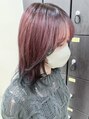 深みのあるチェリーレッドに、全体の毛先だけダークカラーをプラス。艶やかな色味が光を受けるたび、表情を変えるスタイルです。フェイスラインを引き締めながら、赤紫の華やかさも楽しめます。