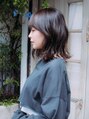 光に透けると透明感のあるブラウンカラーでナチュラルな雰囲気に仕上げています。カットは全体的にパツッとしたカットラインですが、顔周りに少しのレイヤーを入れることで重たくなりすぎない印象を与えてくれます。