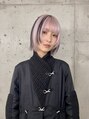 ハイトーンピンクベースにオフブラックのローライト。顔まわりにレイヤーカットを入れたボブスタイル