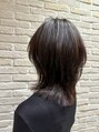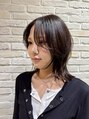 顔まわりの似合わせカット。一人ひとりの骨格や輪郭の特徴に合わせて顔まわりの曲線の角度・長さを丁寧に調整。全体はソフトウルフ系のヘアデザインで肩に乗る毛先の動きやレングスバランスをコントロールします。