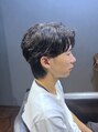 トレンドのツーブロックマッシュウルフをベースに、軽やかな動きと立体感を計算して仕上げた、大人のメンズパーマスタイル。フェザーパーマとセンターパートで清潔感と抜け感を両立し、ビジネスでもプライベートでも好印象!今旬のヘアデザインです。