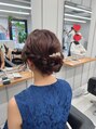 肩につくかつかないかくらいの髪の長さのお客様のアップスタイルです。