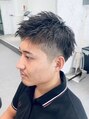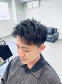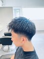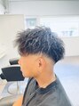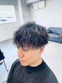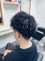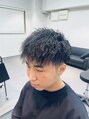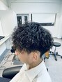 刈り上げとツーブロックを入れ、似合わせ間違いない無しのスタイルです。パーマの強さでセットの楽さも変わってきます