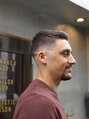 トップをタイトに寝かせて前髪だけを立ち上げる王道のバーバースタイルです。やはりこうゆうクラシックなスタイルはスキンフェードが締まります!
