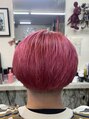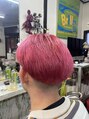 新生毛をワンブリーチその後レッドとヴァイオレットを混ぜて塗布しました