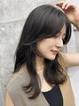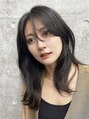 ワンカールとリバース巻で動きの出やすいミディアム、セミロングのレイヤースタイル。柔らかな毛流れでやりすぎない落ち着いた雰囲気になります。カラーはダークカラーでも透明感で重すぎない印象に