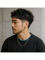 自然な立ち上がりのあるナチュラルパーマに、タイトなツーブロックを組み合わせた軽やかスタイル。 後頭部に丸みを出し、毛先は空気を含むように動きをプラス。 黒髪の立体感と程よいラフさで、大人のストリート感を演出。