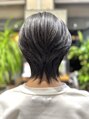 トップにレイヤーを入れて、後頭部に自然な丸みとボリュームを。襟足は軽くタイトに引き締めているので、横顔のラインがきれいに見えるシルエットになっています。
