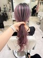 アンブレラカラーは、髪の表面(外側)と内側で色を変えるデザインカラーのこと。上から見たときは落ち着いた色味でも、髪を動かしたり結んだりしたときに内側のカラーがチラッと見えるのがポイントです。