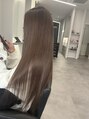 透けるような透明感のミルクティーグレージュ。こちらはカラー剤でダブルカラーをしています。ブリーチよりも傷まず、ワンカラーよりも圧倒的に透明感がでるので、現状の髪色が暗めの方、いつもオレンジになってしまう方はこちらがおススメです♪