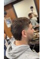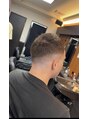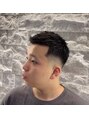 もみあげのみにフェードカットを入れたテーパーフェード。フロントは短く、バックは襟足を残すスタイル。海外の定番のスタイルです。少し変わったスタイルに挑戦したい方におすすめです。