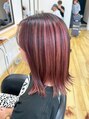 深みのあるピンクベージュに、ローライトを細かく入れて立体感をプラスしたストレートミディ。動くたびにツヤと色のコントラストが映えるカラーで、光の当たり方によってピンクやバイオレット系の表情が変わります。