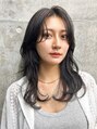 お顔周りに動きの出やすいレイヤーを入れたミディアム、セミロングスタイル。前髪の立ち上がりで立体感をより出しやすくしてます。
