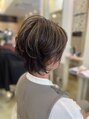 ショートからの伸ばし中スタイル長さを残してバランスよく。ベースカラーはトーンダウンしてハイライトをさ引き立てたコントラストハイライトで重く見えないよう躍動感を出しています。