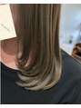 全体の量感は残しつつ、顔周りと全体に入れたレイヤーが柔らかく上品な雰囲気に。毛先をワンカールするだけで、ナチュラルで抜け感のあるシルエット。赤みを抑えたグリーンカラーが映える、オフィスでもプライベートでも好印象な大人のナチュラルスタイル。