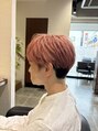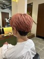 くすんだピンクオレンジカラー。パキッとしすぎない色でファッションにも合わせやすい秋カラーです。刈り上げは染めないので伸びてもリタッチが気になりにくいです!