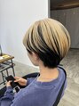 ホワイトブロンドのアンブレラカラーとセンターパートショート/ホットペッパービューティー