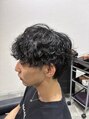 波巻きパーマとツイストスパイラルのミックスパーマ。前髪は上げても下ろしてもかっこよく決まるスタイルです!
