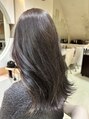 カットは段をつけずにコテ巻きで緩くアレンジ。カラーも暗めグレーにさりげないイヤリングcolor