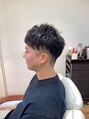 サイドは3ミリのツーブロック、バックは3ミリの刈り上げ全体に癖毛を活かしたマッシュベースのショートスタイル