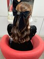 ツインアレンジ 編みおろし ベロアリボン 参列ヘア イベントヘア