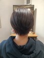 前髪は分けているのでない感のスタイル。前下がりベースでのショートスタイルです。襟足もスッキリ見えてシャープな感じでとてもお似合いです。形や印象も変化がつくのでショートヘアの中でも万能なスタイルと思います。気になる方はぜひ、お試ししましょう。