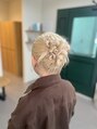 - 小倉/チャコールグレー ナチュラルブラウン ココアブラウン パールベージュ サイドお団子 ラウンドバング
