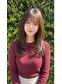 重すぎず、軽すぎない絶妙なレイヤーバランスで仕上げたスタイル。顔まわりに自然な動きをつけることで、表情を柔らかく見せながら小顔の効果もプラス。光に当たるとほんのり透けるブラウンカラーが、肌を明るく見せてくれます。
