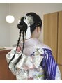 成人式の前撮りヘアセットタイトめにまとめて首周りスッキリ◎編み下ろした2本がひと癖ポイント