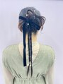 ミックス巻きでしっかりと巻いているのでローポニーで落ち着きがありながら華やかなスタイルに♪