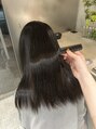 髪の状態を丁寧に見極めながら薬剤を選定し、やわらかさを残したまま自然なストレート。乾かすだけで整う扱いやすさと、光をまとったようなツヤ感がしっかり伝わる仕上がりにカラーは、肌なじみの良いブラウンをセレクト。