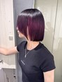 カシスラベンダー 切りっぱなしボブ ブリーチなしダブルカラー