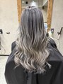バレイヤージュ、ハイライト、レイヤーロング、グレーベージュ/ホットペッパービューティー