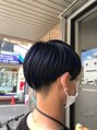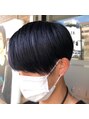 サイド、ネープ周りをツーブロックで繋げ、タイトなマッシュカットカラーはダブルカラーのネイビーにしました