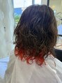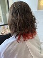 インナーカラーで秋色の紅葉のような オレンジレッドを入れました。