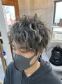 エッジの効いたホワイトハイライトトレンドのだれる系のツイスパとショートマッシュのベースカット束感スタイリングも楽ちんなスタイルです♪メンズカット/ツイストスパイラル/アップバング/メンズパーマ/プライベートサロン