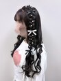 編みたらしスタイル!イベントヘアメなのでリボンとパールピンたくさんつけて豪華にしました♪巻き方はミックスで夜まで待つようにしっかり目に!!