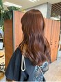 少しピンクをミックスさせた明るめのブラウンカラー暖色系ブラウンは暖かみを感じさせ柔らかい印象になります!髪質改善トリートメントも行い栄養を入れているので色持ちもアップです☆巻いてもぷるんとまとまりやすいのでおすすめです!