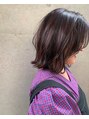 鎖骨くらいの長さのミディアムスタイル。トップにレイヤーを入れて外ハネにくびれるスタイルになってます。カラーはブラウンバイオレットで品があるカラーに。髪質えおあまり選ばずにオススメ出来るスタイルです。