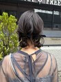 髪質が柔らかく細く、少しボリュームを出すのが難しいお客様。最初にしっかりコテで巻いて質感を作り、立体感を出しました。リボンや金箔の装飾もあってさらに可愛いです!