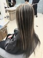 アンブレラカラーとハイライトの組み合わせ♪コントラストを強めて立体的なカラーリングです!顔周りはフェイスフレーミングで明るい印象に!