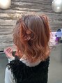 ブリーチ2~3回ベースをピンクベージュにしてルーツカラーでオレンジをプラス☆